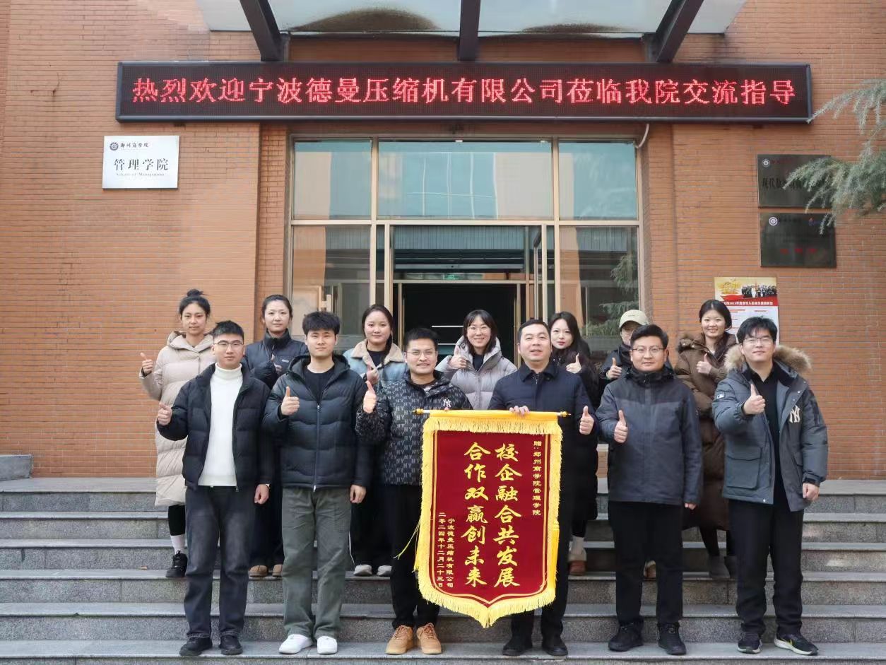 2024年12月23日宁波德曼压缩机有限公司叶经理一行莅临我院交流指导,感谢我院长期以来对企业工作的支持与帮助,并赠予我院荣誉锦旗。管理学院党委书记宋森、团委书记陈勇彬、就业专员张逸凡及全体辅导员参与本次交流会。