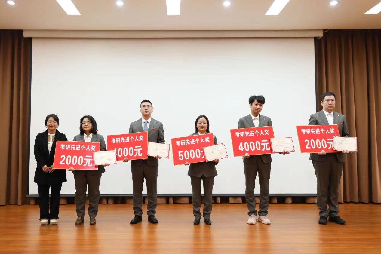 考研指导优秀导师代表贾娇,科研先进个人代表李明哲,就业工作先进个人代表张逸凡,中联企业管理集团有限公司总经理赵飞鹏,分别围绕教学工作、科研工作、就业工作、校企合作的体会与感想作了交流发言。