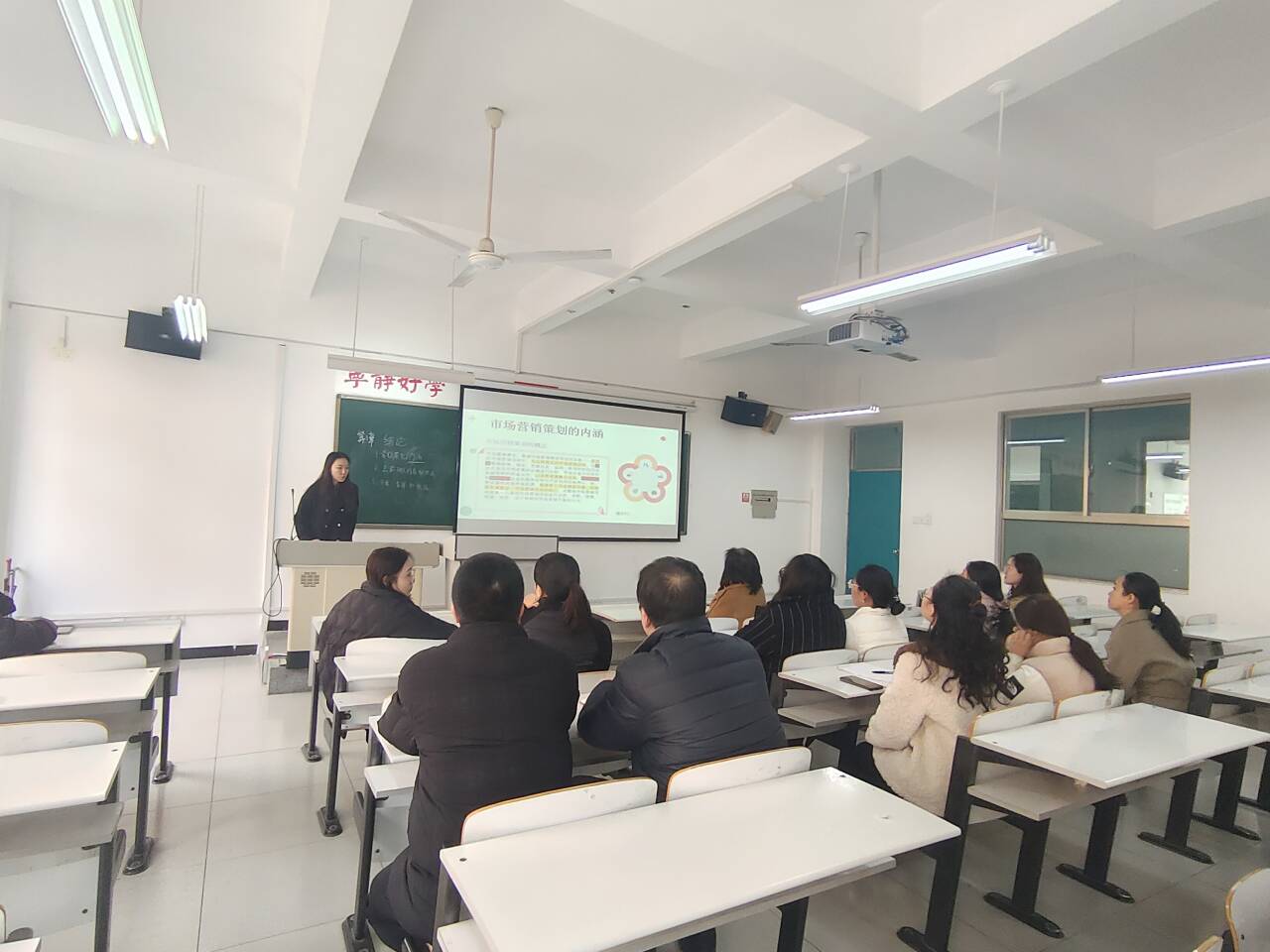 为帮助新入职教师尽快适应教学岗位,提升教学水平和能力,我院市场营销教研室于2月18日举办了“新入职教师开学第一课”活动。其中,两位新入职教师进行课堂展示,市场营销教研室全体教师参与指导和学习。