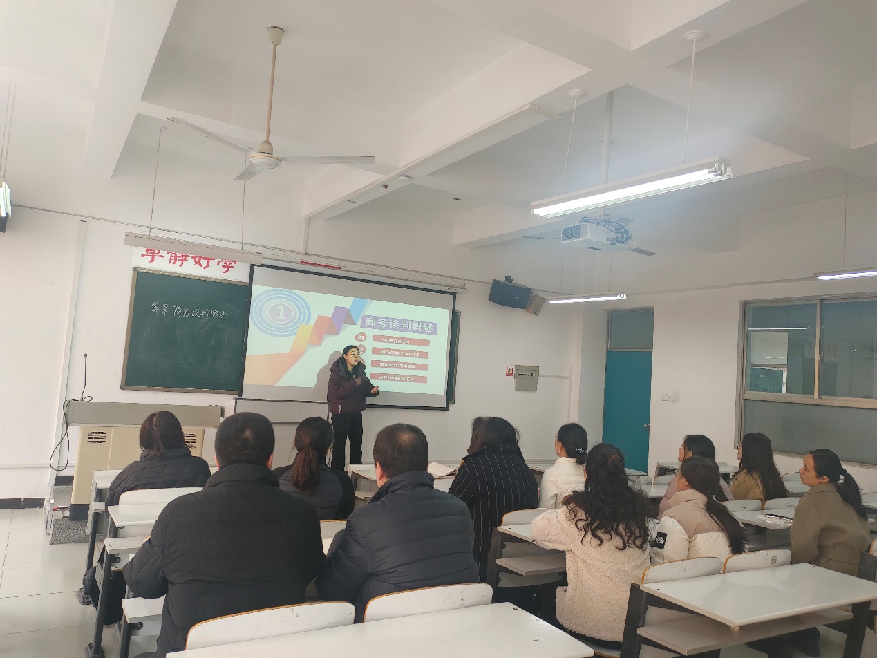 活动中,两位新入职教师分别进行了15分钟的课堂模拟,首先由刘慧红老师对《商务谈判》课程进行教学现场展示,刘慧红老师通过问题导入的形式,引导学生思考日常接触到的谈判活动,并通过案例引入的方式使学生更好的认识谈判的定义和内涵。其次,由栗源泽老师对《营销策划》课程进行现场展示,栗源泽老师以企业真实案例为切入点让学生认识到营销策划对当下市场发展的重要性。