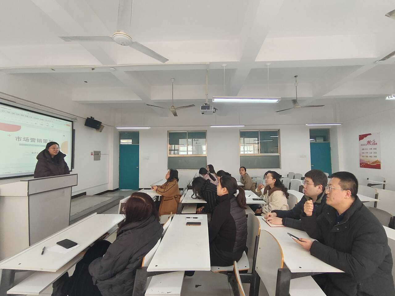 为帮助新入职教师尽快适应教学岗位,提升教学水平和能力,我院市场营销教研室于2月18日举办了“新入职教师开学第一课”活动。其中,两位新入职教师进行课堂展示,市场营销教研室全体教师参与指导和学习。
