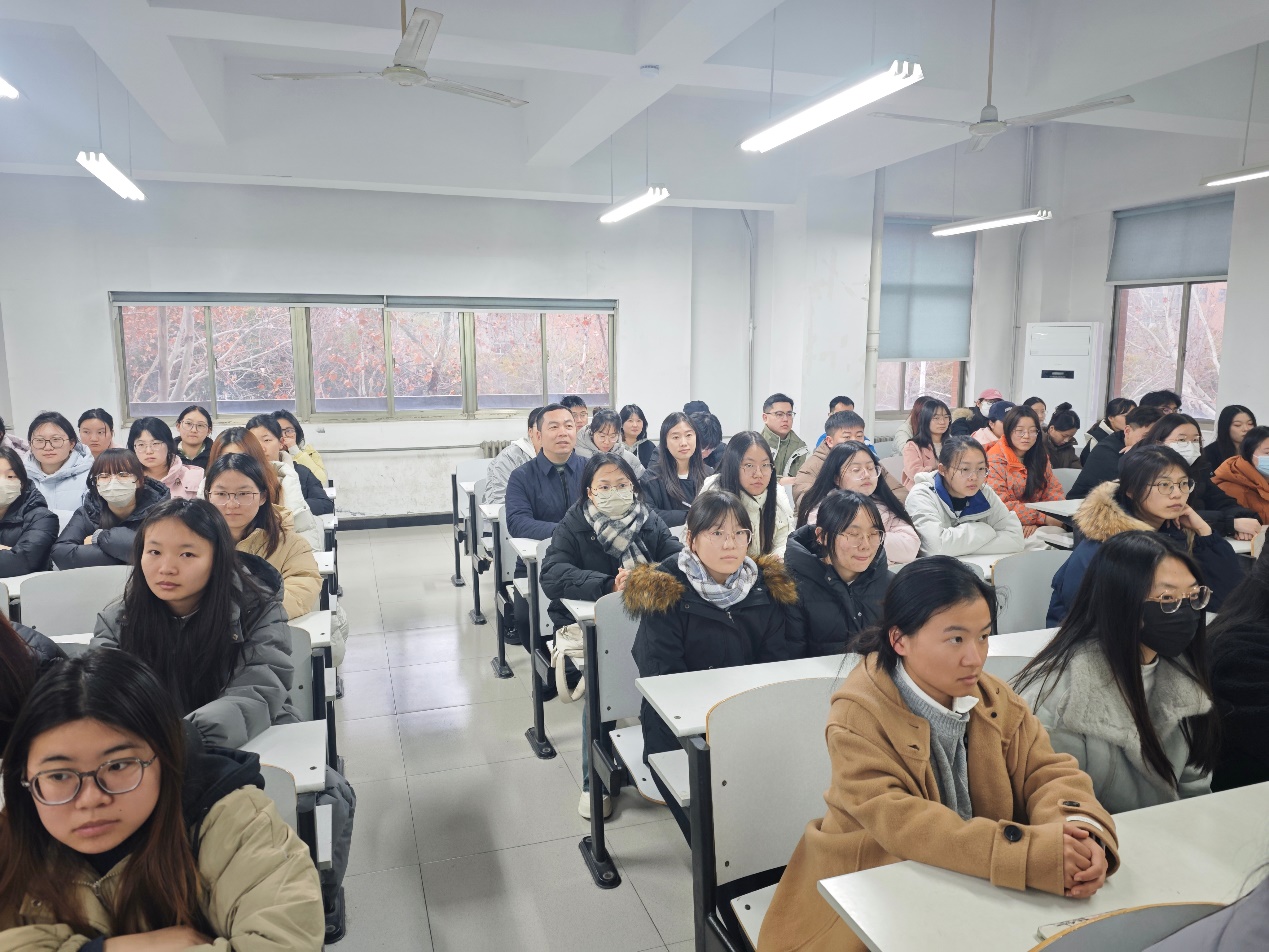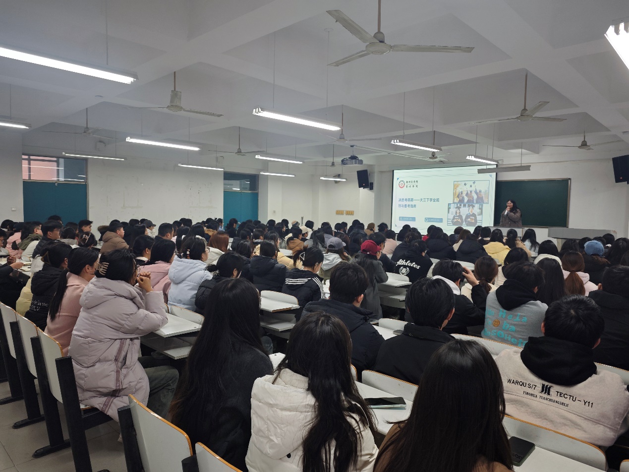 本次示范性班会由丁梦娇老师主讲,丁老师以《决胜考研路——大三下学业规划与备考指南》为主题, 结合所带学生实际情况,从“现阶段情况,目标定位策略、备考规划与执行、资源整合与工具推荐、心理调适与团队协作”等方面,为大三准备考研学生提供规划和思路,提醒同学们在埋头苦学的同时不要忘记发展自身优势。