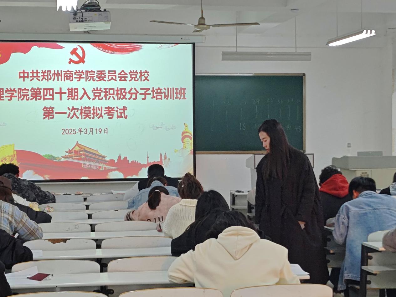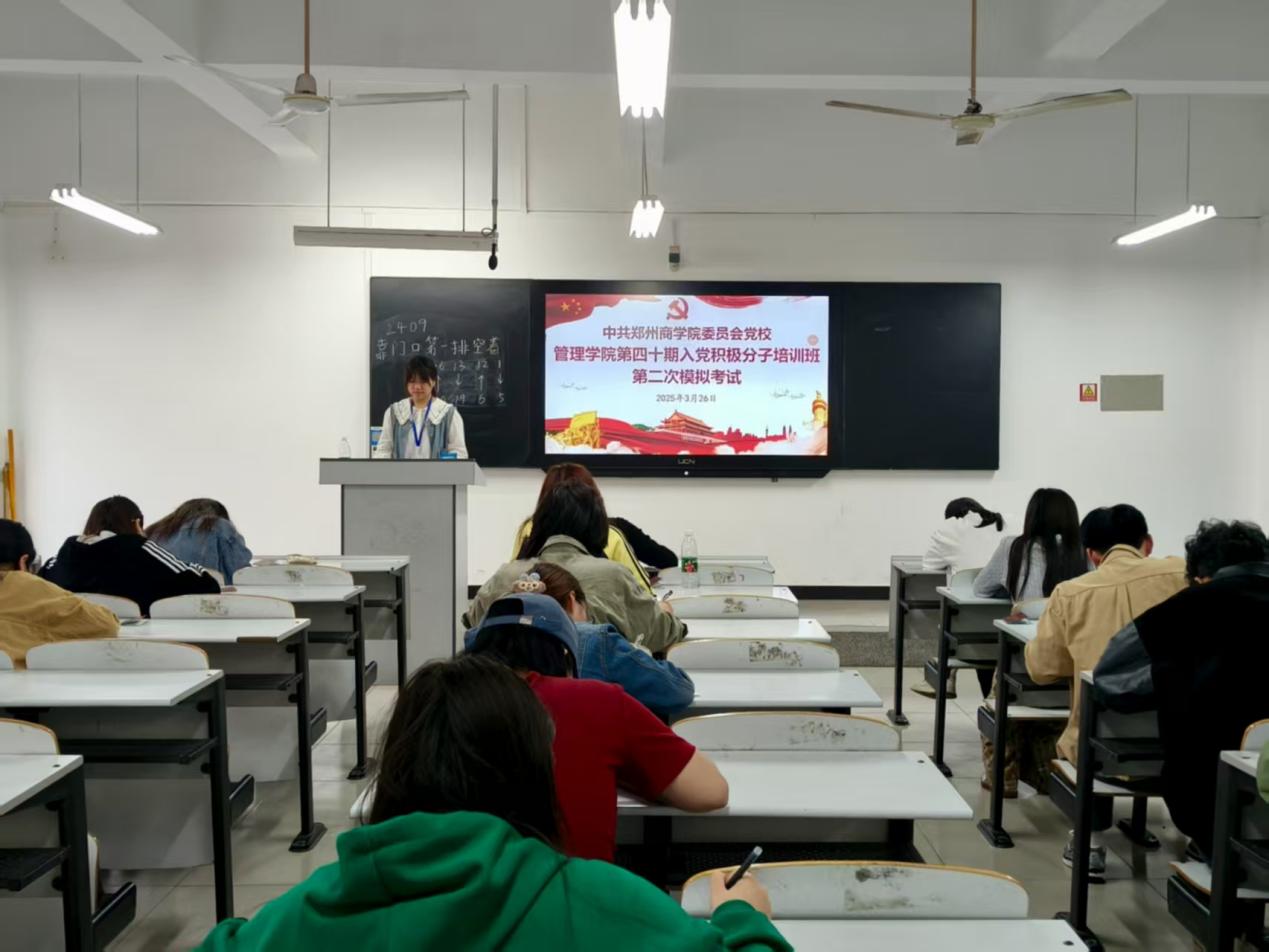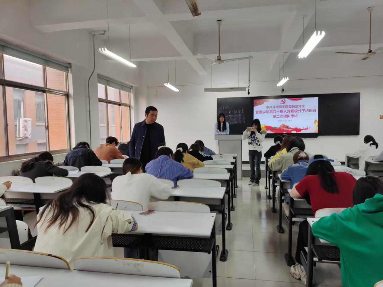 模拟考试采取闭卷形式,题型丰富多样,旨在全面考查入党积极分子对党的理论知识的学习、理解和运用能力,以考促学,筑牢信仰根基。考试现场秩序井然,考风严肃。考试期间,我院党委书记宋森同志、团委书记朱赛楠同志深入考场巡查,仔细翻看试卷、查看考试情况,表示了对入党积极分子培训工作的高度重视。入党积极分子们全神贯注、认真作答,用端正的态度展现出向党组织靠拢的坚定决心。
