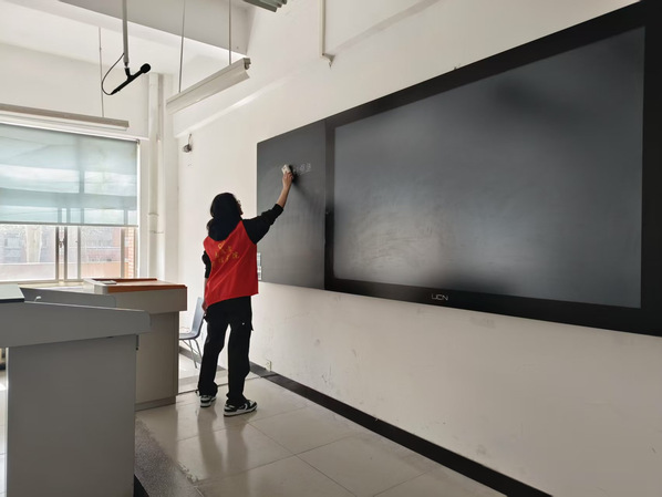 活动中,志愿者们进行分组分工,对教室的课间一分钟环保情况进行检查,并对于卫生情况不佳的教室进行记录和及时清理,同时将未关灯落锁的教室及时断电落锁。