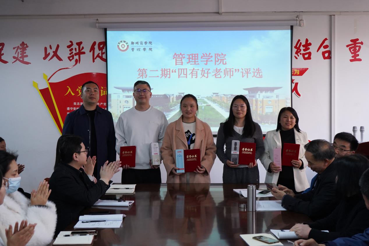 评选过程中,与会老师秉持公平、公正、公开的原则,以无记名投票方式进行民主评选。经过严谨细致的计票,最终3名教师和1名辅导员脱颖而出,荣获第二期“四有好老师”称号。宋书记为获奖人员颁发荣誉证书,对他们的辛勤付出与贡献给予充分肯定与赞扬。