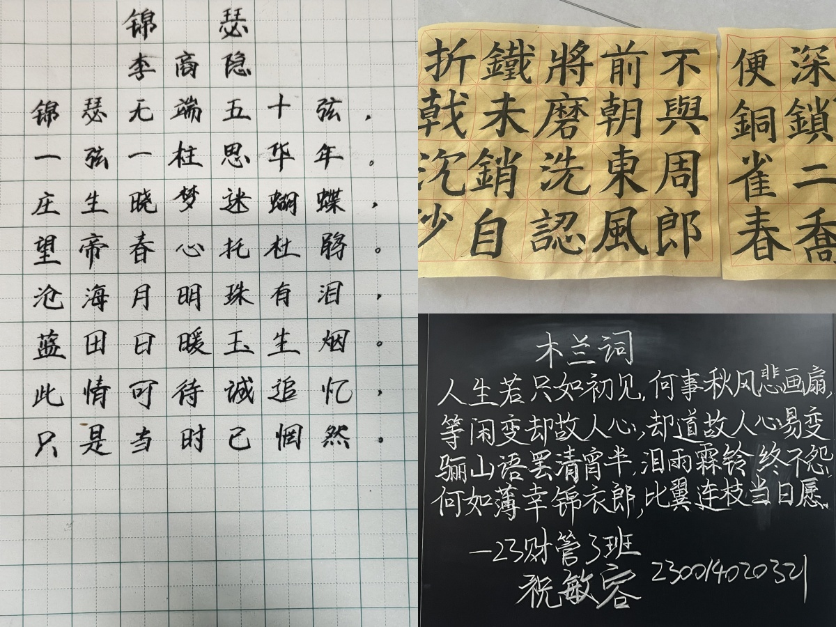 为弘扬中华优秀传统文化,激发大众对书法艺术的热情,提升书写与审美素养,我院于4月24日在举办“书香润心灵,墨香促成长”三笔书法比赛活动初赛,本次大赛初赛借助QQ群这一便捷平台进行作品收集,吸引了来自beat365共计400余位选手踊跃参与,在硬笔、毛笔、粉笔三个赛道上各展风采。