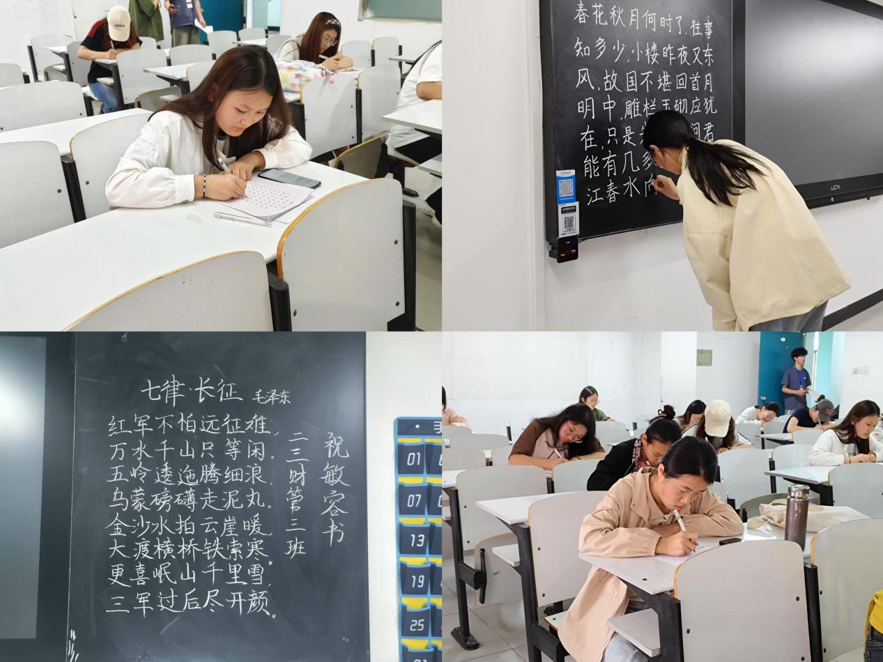 4月29日下午,由我院举办的“书香润心灵,墨香促成长”三笔书法决赛在2303、2304、2305、2307教室顺利举行。本次活动面向我院全体学生,吸引了400余位选手参与,经过初赛选拔后,有65名选手来到决赛。