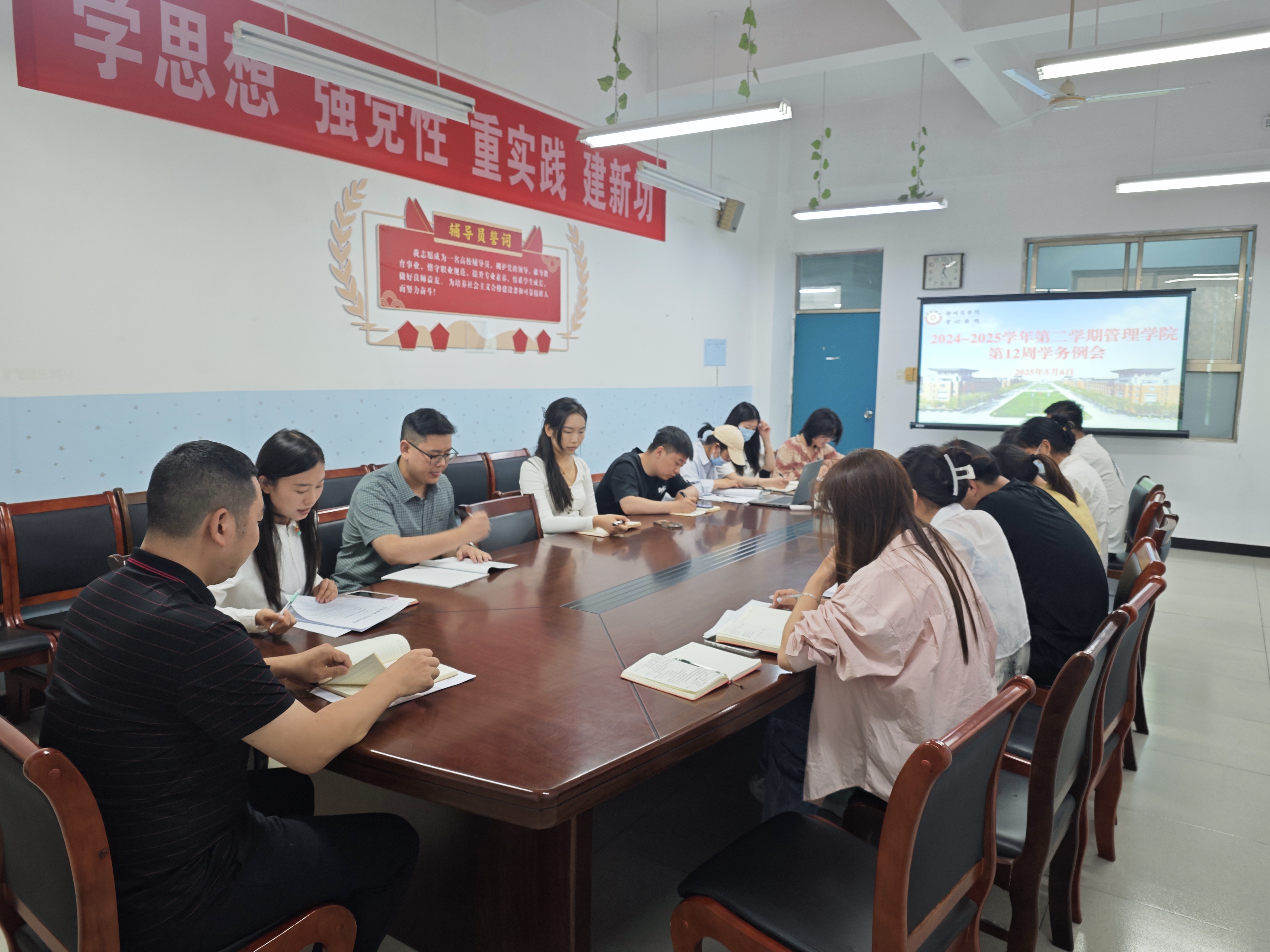 5月6日,我院在2号教学楼105会议室召开2024-2025学年第二学期第十二周学务例会,我院党委书记宋森、团委书记朱赛楠及全体辅导员参会。