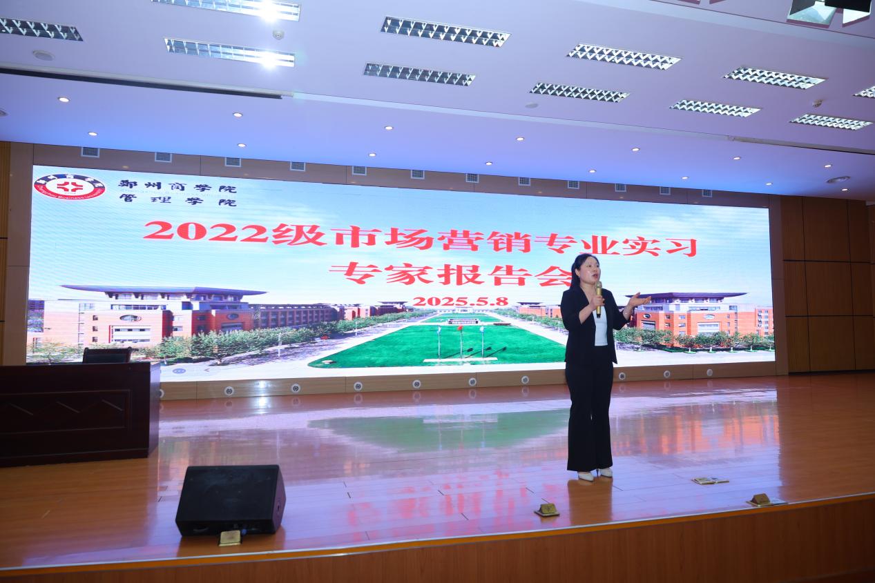 为深化市场营销专业实习工作实效,助力学生明晰职业发展路径、锚定高质量就业目标,5月8日市场营销教研室于学校图书馆1楼国际报告厅举办专业实习专题报告会。此次活动特邀上海花盈未来网络信息有限公司联合创始人、投资人常英副教授担任主讲嘉宾,面向2022级市场营销专业全体学生展开深度分享。报告会由市场营销教研室主任张玲燕主持。