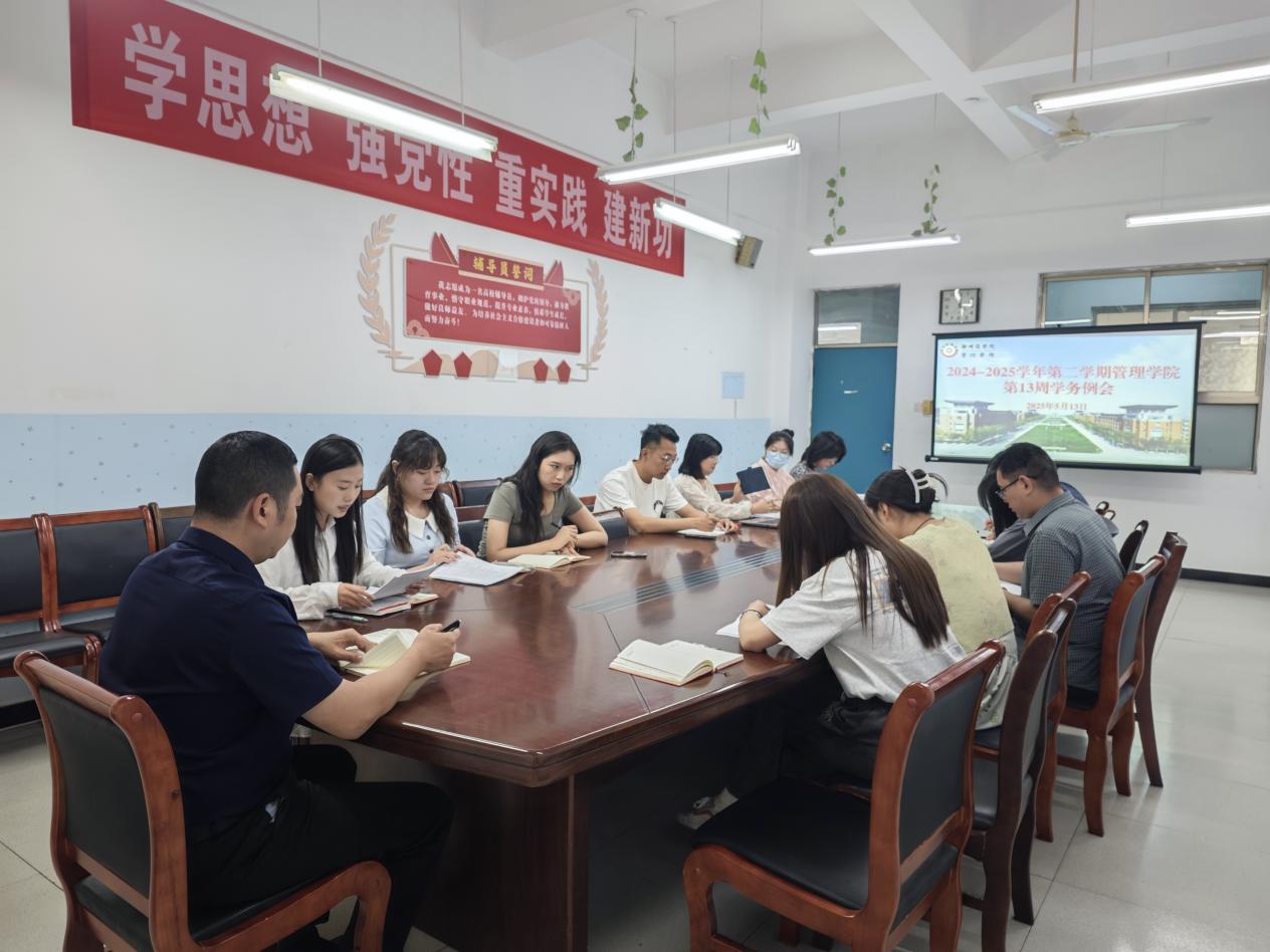 5月13日,我院在2号教学楼105会议室召开2024-2025学年第二学期第十三周学务例会,我院党委书记宋森、团委书记朱赛楠及全体辅导员参会。