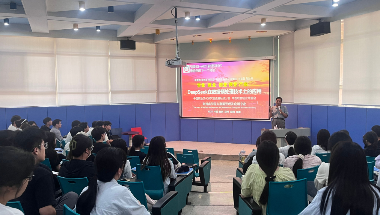 中国商业文化研究会直播经济分会副会长乔全晓进行《数据预处理技术》课程的讲授,他围绕“DeepSeek在数据预处理技术上的应用”这一主题对23数管1班、2班学生进行授课。乔老师基于当前数字经济发展趋势及现状,介绍了多种数智化应用工具,剖析了DeepSeek如何在数据清洗、集成、转换、归约等预处理环节精准发力,提升数据质量,加速科研与实际应用进程。课堂上,学生全神贯注,积极互动,纷纷表示收获颇丰,为后续专业学习与实践开拓了新思路。