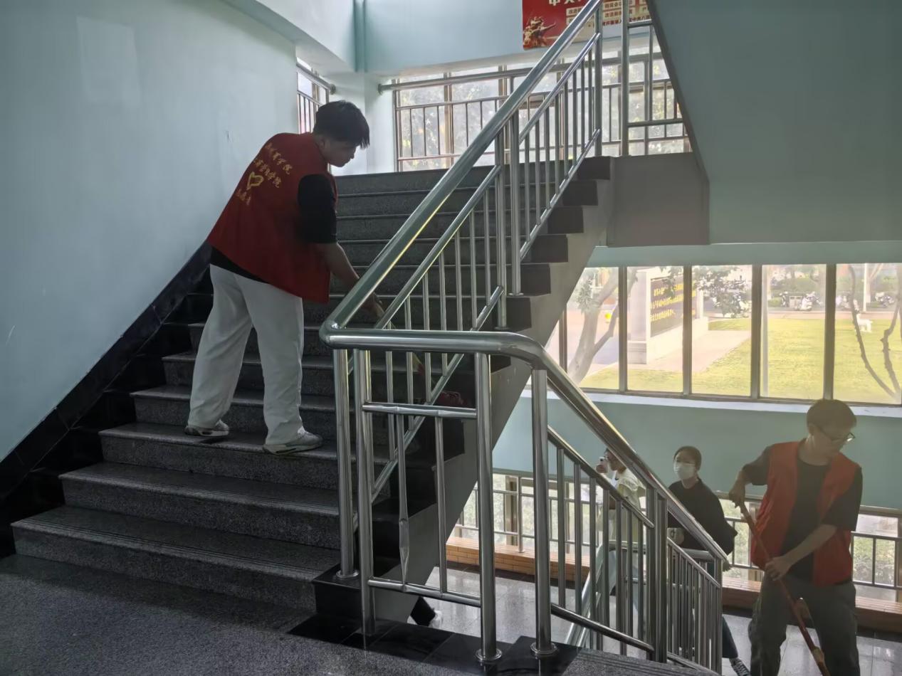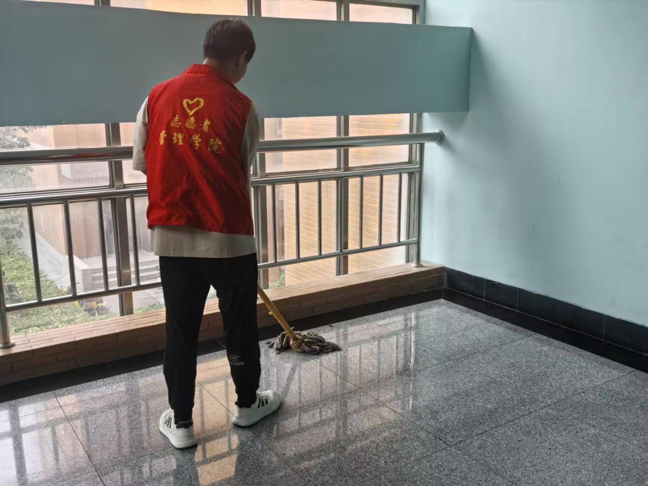 负责老师对志愿者们进行分组分工,并嘱咐志愿者们在活动过程中注意安全。活动过程中,志愿者们对教学楼的公区卫生、图书室、学生会办公室等地进行了细致的打扫,力争实现无卫生死角,营造干净明亮整洁的教学楼环境。