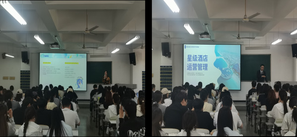 5月12日,特邀锦江酒店中国区冯亚琼总经理和郑地奥体建国酒店郑亮总经理于2201教室进行实习讲座,鼓励学生明确职业目标和发展方向,制定合理规划,并为之努力奋斗。