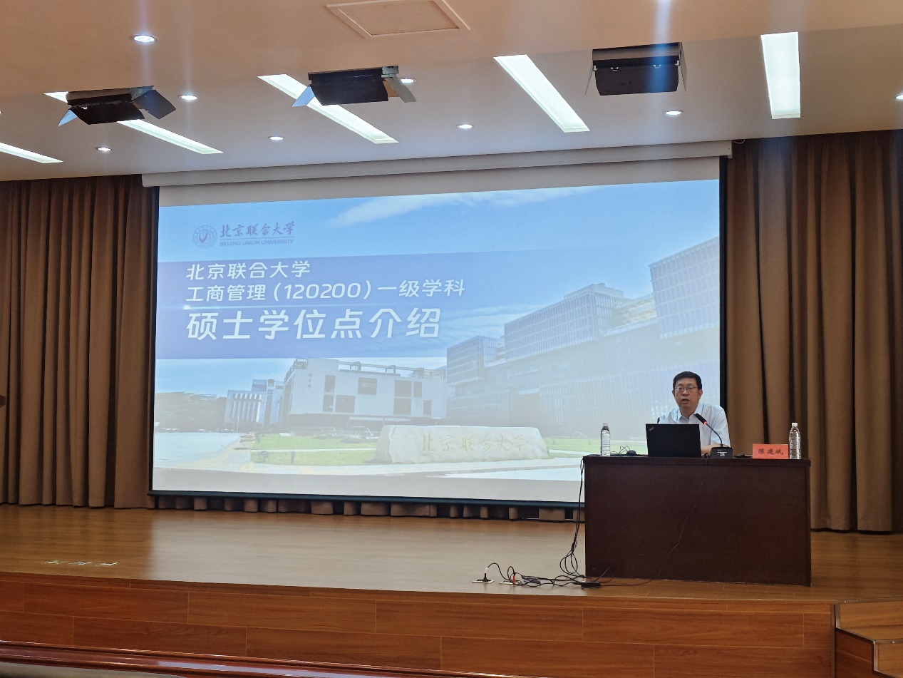 此外,陈院长还对北京联合大学硕士招生进行了介绍,重点从区位优势、学校发展、学院发展、培养特色、招生政策等方面对工商管理硕士、国际商务硕士和金融硕士的人才培养情况进行了详细讲解,鼓励学生积极报考北京联合大学。最后,陈院长针对学生的现场提问进行了答疑交流,并鼓励同学们“青春正当时,莫负好时光”,坚持自己的兴趣和梦想,努力提升自己的能力和素养,为未来交上一份无悔的满意答卷,为社会发展和国家建设做出应有的贡献。