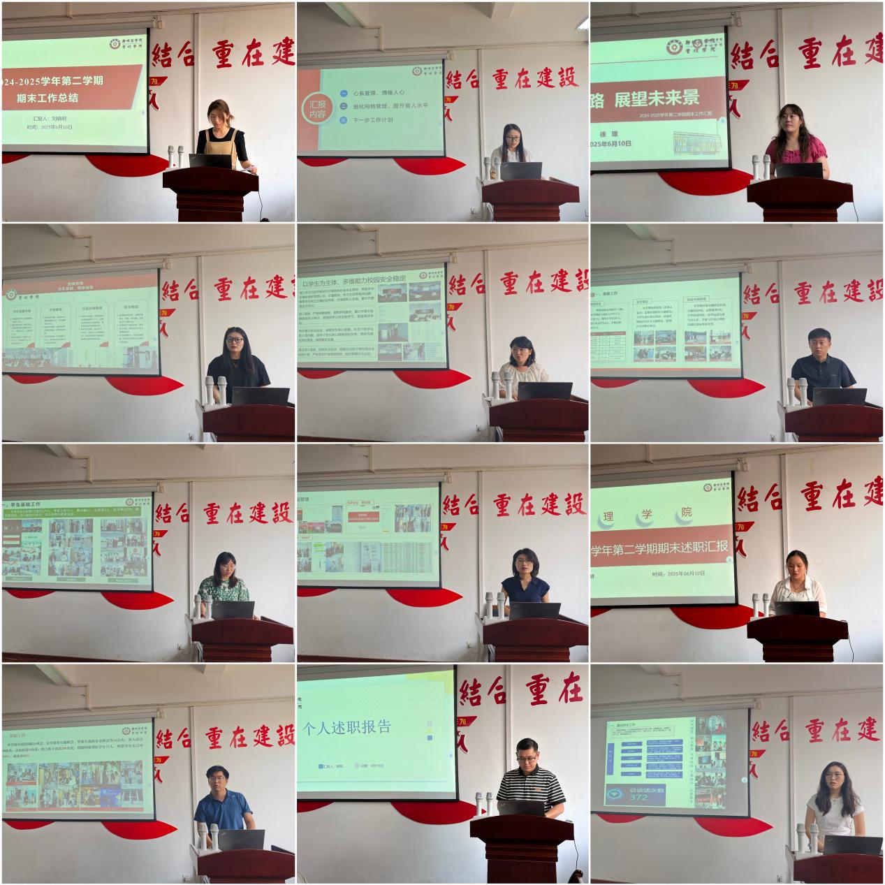 随后,开展2024-2025学年第二学期辅导员述职会。辅导员老师们从基础工作、专项工作、下一步计划和反思进行汇报。