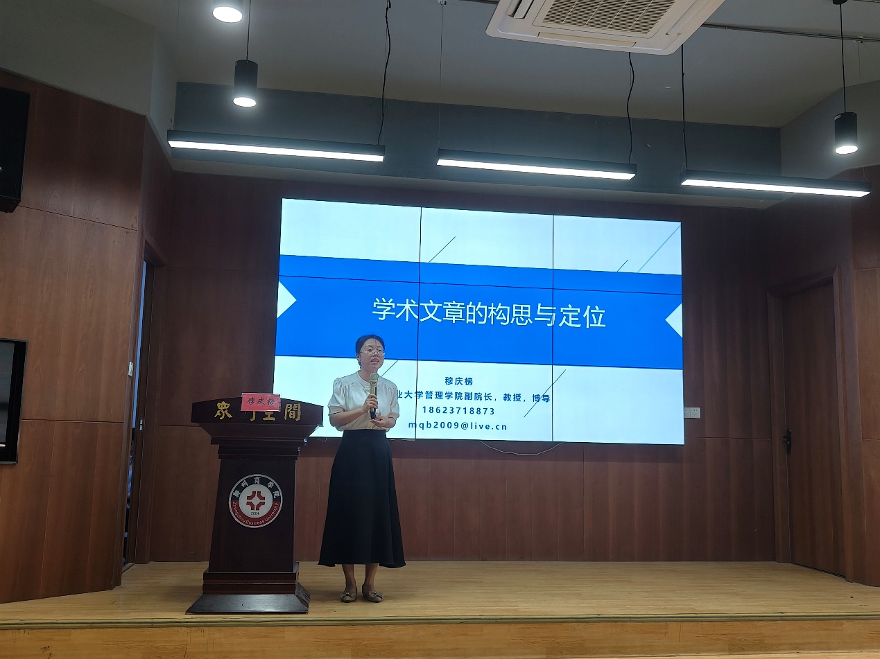 为深入推进校际合作交流,强化教师科研能力建设,全面提高人才培养的质量与成效,我院特邀河南工业大学管理学院穆庆榜教授于6月13日上午在众创空间路演厅开展“学术文章的构思与定位”专题报告。我院李晓翠院长、张卫丽副院长、全体无课教师及2022级考研班学生参加了报告会,报告会由李晓翠院长主持。