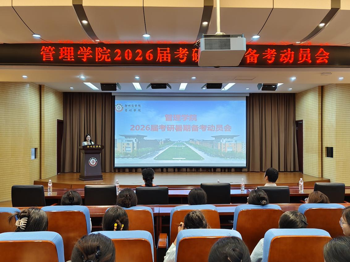 暑期是考研备考的黄金期,也是同学们厚积薄发、弯道超车的关键阶段,为了帮助2026届考研学生进一步明晰复习方向,解决备考困惑,同时做好安全保障,6月30日下午,我院在图书馆五楼报告厅召开了2026届考研暑期动员会。我院李晓翠院长、宋森书记、张卫丽副院长、各教研室主任、考研导师、相关辅导员以及2026届考研留校学生参加了会议,会议由考研教研室主任贾娇老师主持。