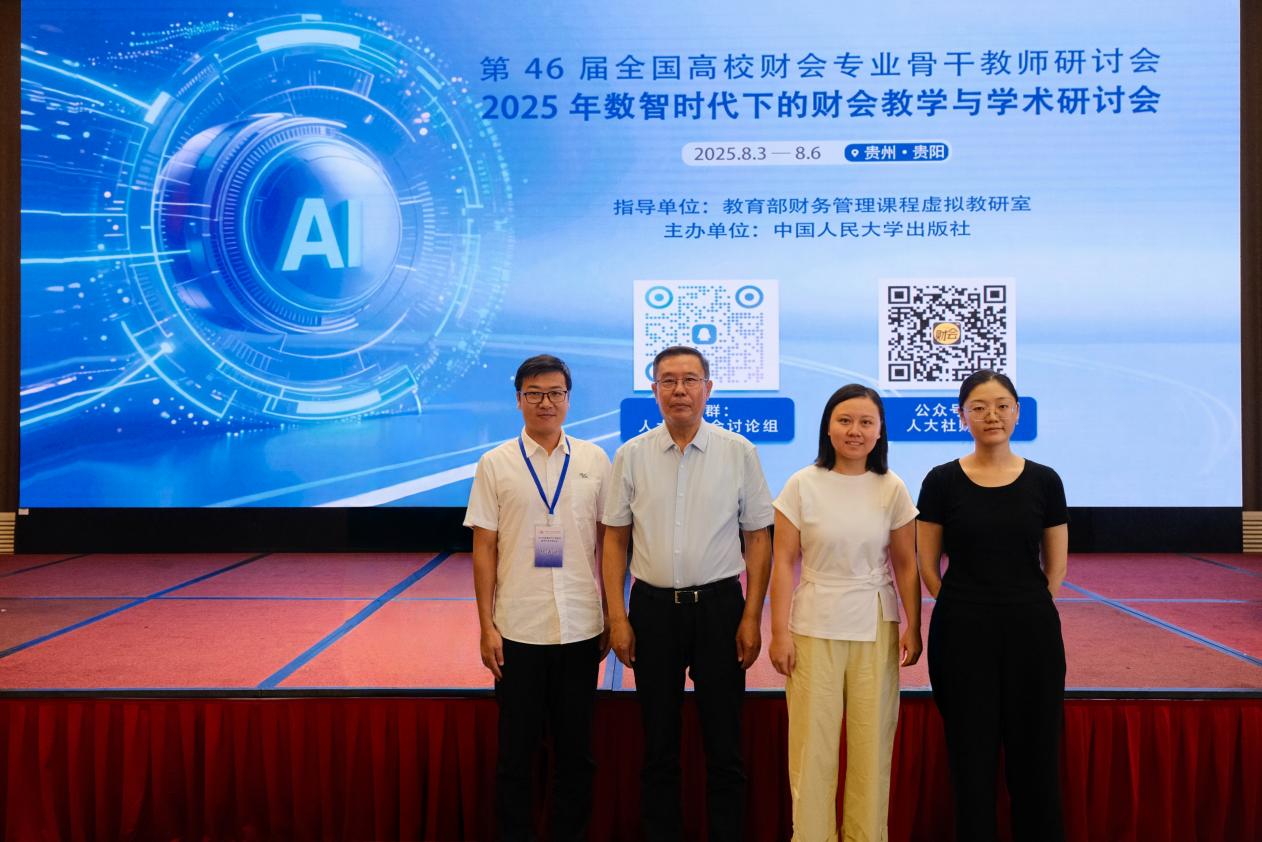 为探讨高校教师如何运用新兴技术赋能教学改革、教材建设与学术研究,我院财务管理教研室主任李鸿春、教师刘琦琦和王梦雪一行三人于8月3日-6日赴贵阳参加由中国人民大学出版社主办的“第46届全国高校财会专业骨干教师研讨会暨2025年数智时代下的财会教学与学术研讨会”。