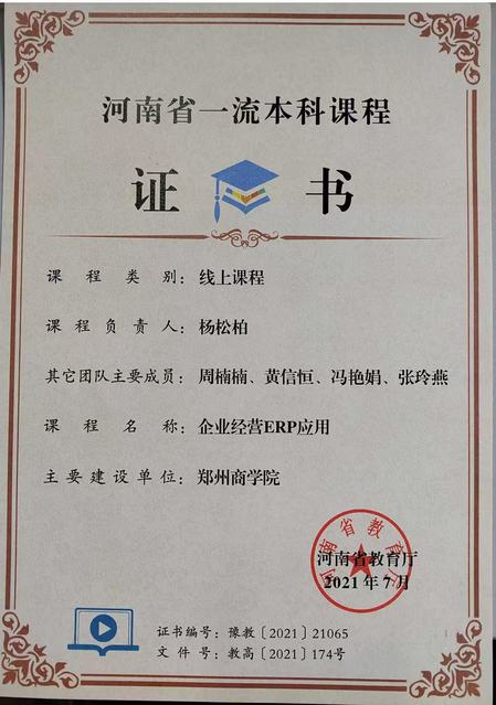 2021年 | 企业经营ERP应用 | 河南省线上一流本科课程 |