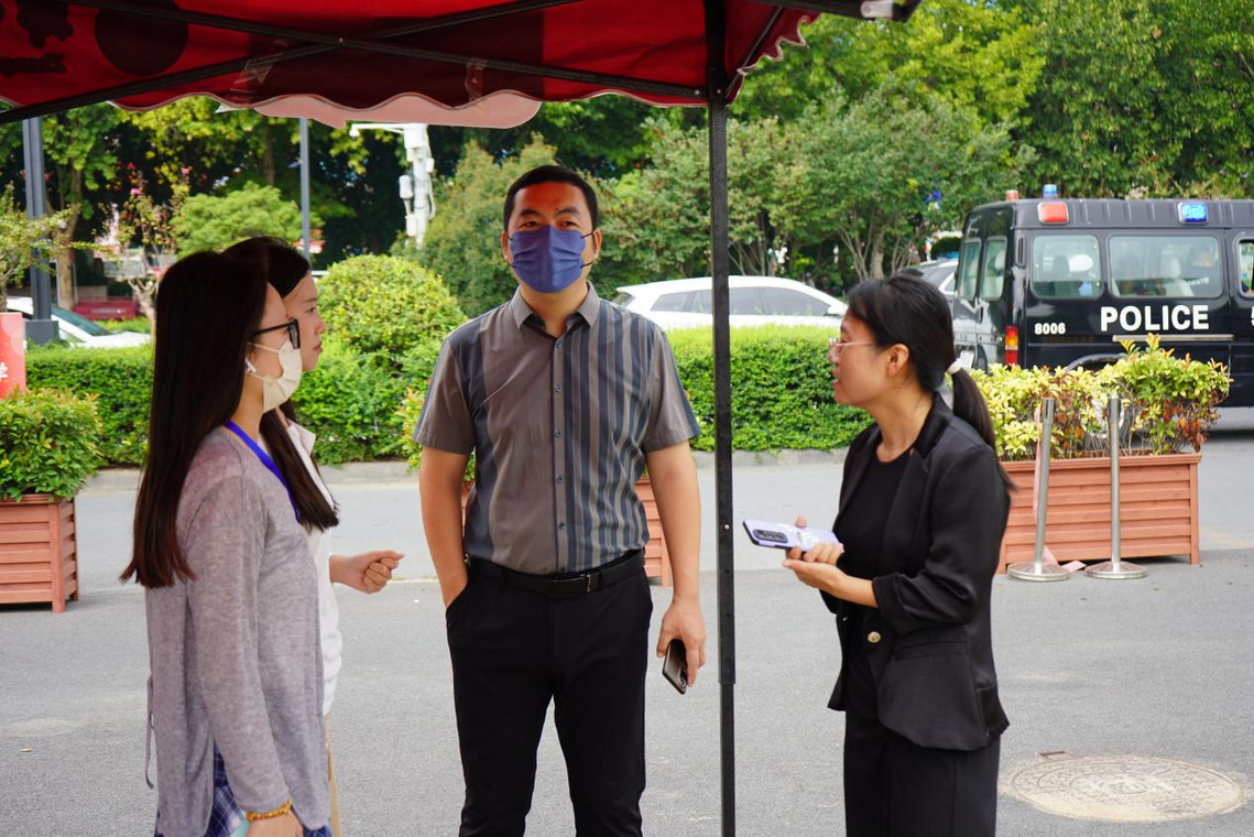 我院院长李晓翠、党委书记宋森一行也早早地来到迎新现场,实地查看了新生报到流程,了解新生报到情况,对在一线辛勤工作的老师和学生志愿者表示感谢,并与前来报到的新生和家长亲切交谈。