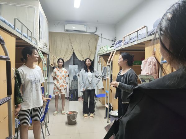 班会结束后,新生辅导员走访宿舍。“从哪里来?”“生活习惯吗?”“学习上有什么困难?”每到一个寝室,老师们都与同学们亲切交流,细致询问大家的入学感受和生活需求,并叮嘱同学们要互相关心、互相帮助,共同营造温馨和谐的生活环境。