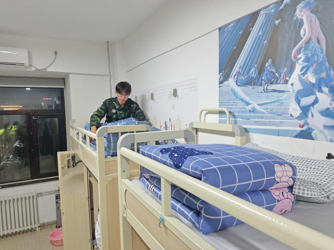 通过系统的内务整理训练,新生宿舍面貌焕然一新,生活环境变得整洁有序。