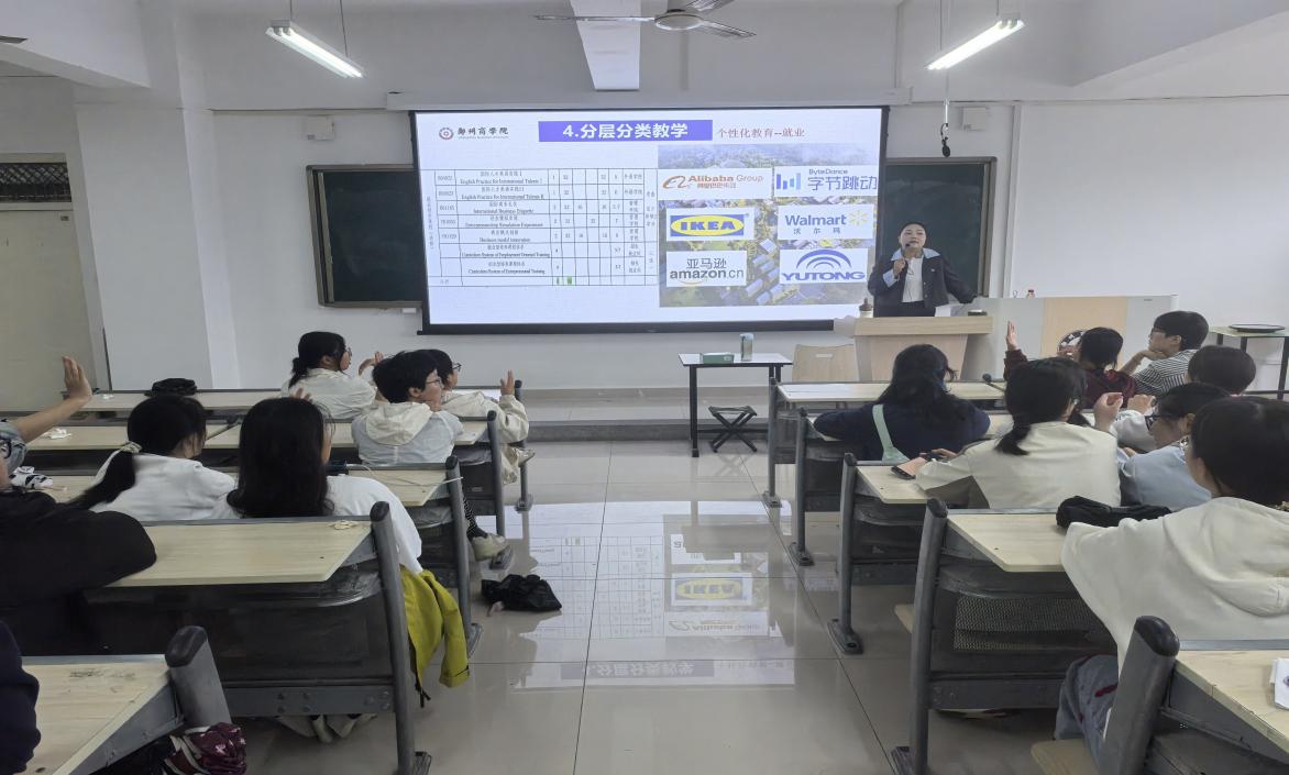 国际商务专业由刘慧云主任、丁硕、王熙源老师等主讲。王熙源老师解读学院“新商科、应用型、国际化”培养特色与专业核心课程;丁硕老师介绍分层分类教学,给出就业考研建议;学生代表分享成长经验,刘慧云主任总结并送上祝福。
