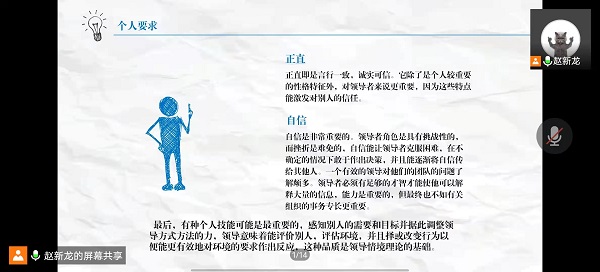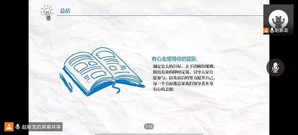 为进一步提升学生干部的领导力,培养在学习工作中的执行力。建工学院于4月7日下午举行了青马培训工程第六讲,以“如何提升学生干部领导力”为主题的培训。本次培训以线上形式开展,由我院赵新龙主席担任此次培训的主讲,青马培训班全体学员参加。