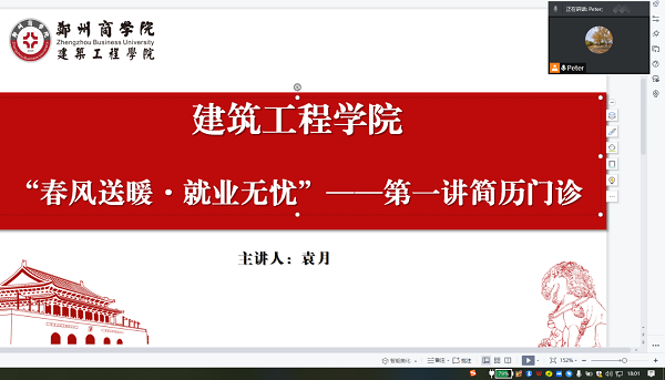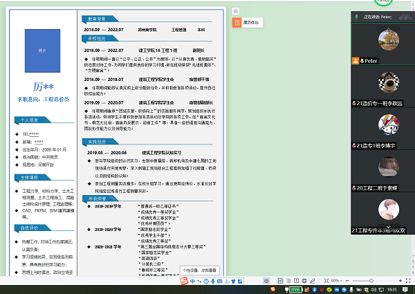 2022年4月11日,建筑工程学院“春风送暖·就业无忧”第一讲简历门诊通过腾讯会议的形式顺利举行。