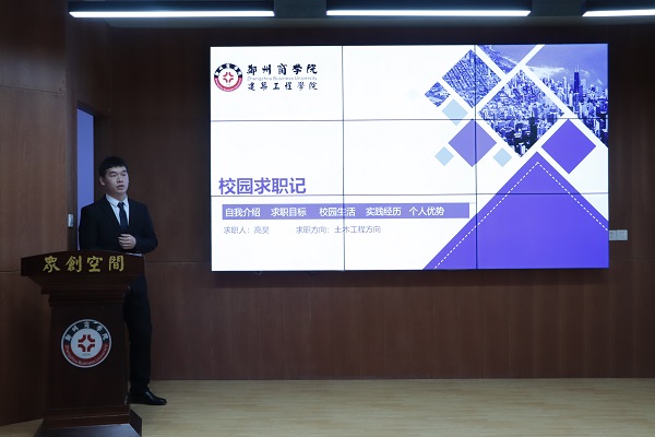 为提升大学生就业指导服务工作水平,践行“就业育人”理念,增强职业发展教育实效,搭建人才培养与社会需求之间的信息桥梁。4月22日,建工学院在学生事务中心三楼路演厅举办“大学生校园求职大赛”决赛。本次比赛由学院党委庞艳华书记、团委刘帅书记、辅导员吴森老师、张婉英老师及刘思老师担任评委,采用参赛选手模拟求职形式进行。