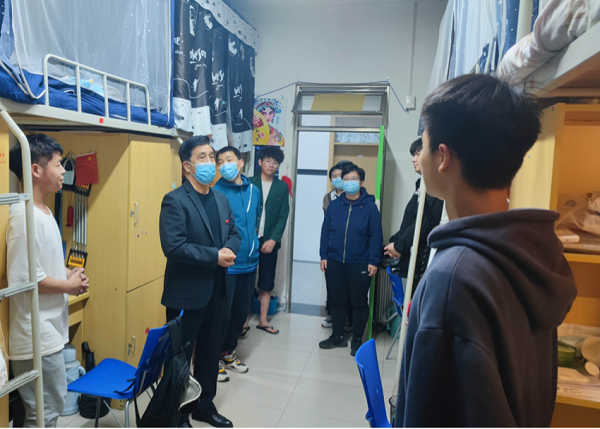 走访过程中,师校长着重查看学生对疫情防控政策的学习情况,叮嘱学生要切实提高疫情防控意识,遵守防疫规定并做好个人防护,积极配合学校的各项防疫工作,按时测量体温,做到非必要不离校,切勿以翻越学校围墙等非正当行为离校。