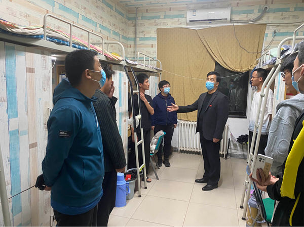 走访过程中,师校长着重查看学生对疫情防控政策的学习情况,叮嘱学生要切实提高疫情防控意识,遵守防疫规定并做好个人防护,积极配合学校的各项防疫工作,按时测量体温,做到非必要不离校,切勿以翻越学校围墙等非正当行为离校。