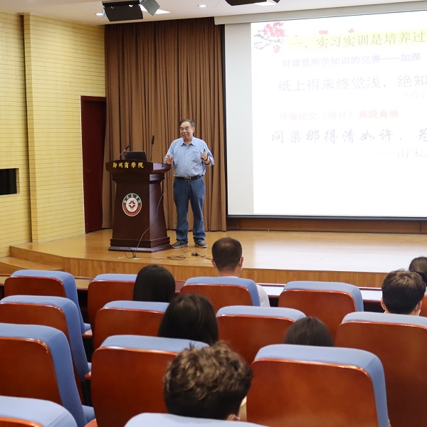 首先,孙院长从人才培养全过程入手,强调了毕业实习的重要意义,希望同学们严格遵守实习纪律,勤奋好学,努力提升综合素质,践行“四个学会”,迅速完成角色转变,从容应对顶岗实习挑战,最终实现高质量就业。然后,孙院长强调了毕业论文的重要性,并且对我院2023届毕业生的毕业论文和毕业设计的选题、格式规范等方面做出了“三实、三化、三避免”的具体要求。接着,实验中心主任陈水龙老师和毕业论文组杨秀珂老师分别就毕业实习具体安排、毕业论文写作的注意事项及具体要求进行了详细讲解。最后,由副院长张燕燕总结讲话,激励2023届毕业生认真投入实习实训及毕业论文(设计)工作。