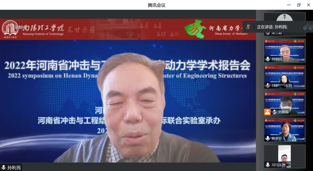 本次学术报告会议由河南省力学学会主办,河南省冲击与工程结构灾害动力学国际联合实验室承办。在南阳理工学院会议中心举行,采用线下和线上相结合的方式举行。会议首先由南阳理工学院校领导与河南省力学学会秘书长、我院院长孙利民教授分别致辞,随后由15位专家分别作会议主旨报告、邀请报告、青年学者报告。会议主要内容包括冲击吸能结构的创新设计、冲击动力学的实验和数值模拟进展、地质灾害动力学、材料动力学行为的实验与表征等。
