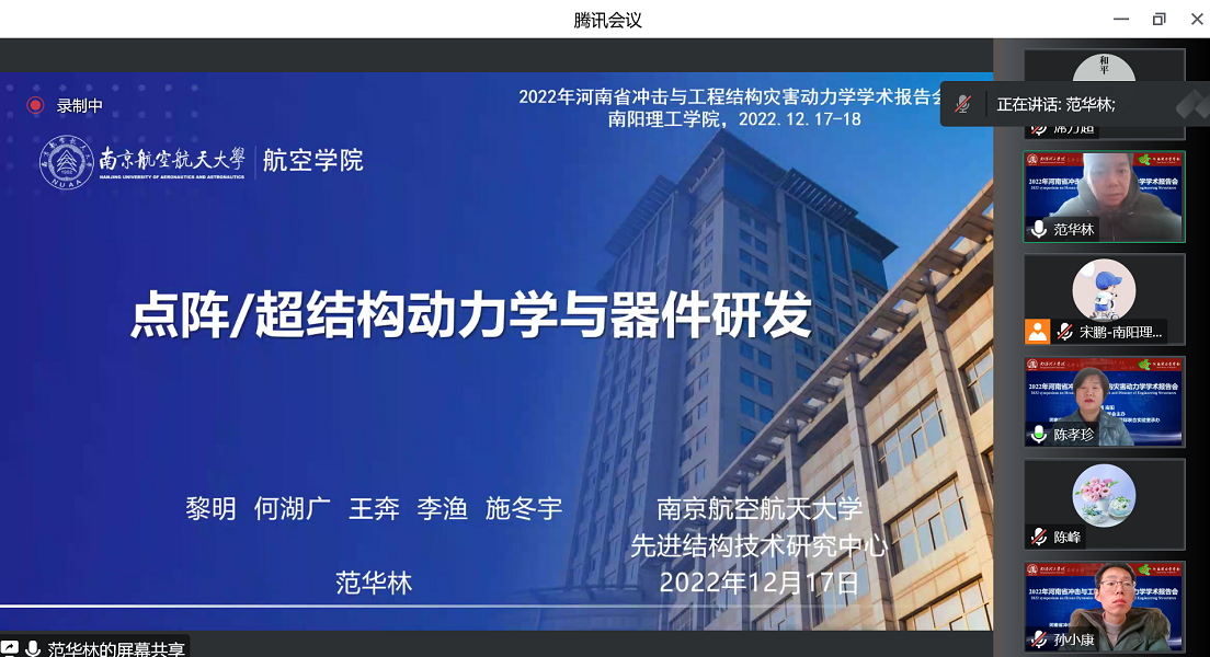 为了解冲击动力学与工程结构灾害动力学的最新研究进展,加强学术交流和提升我院教师协同创新能力,12月17日-18日,我院院长孙利民、工程结构教研室和工程基础教研室教师参加了2022年河南省冲击与工程结构灾害动力学线上学术报告会。