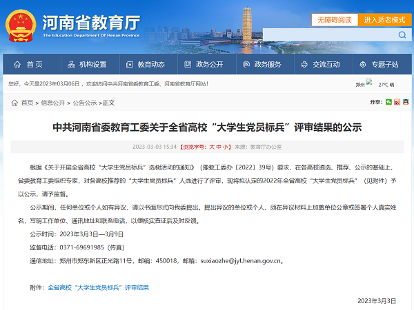 我院学子荣获“河南省大学生党员标兵”荣誉称号