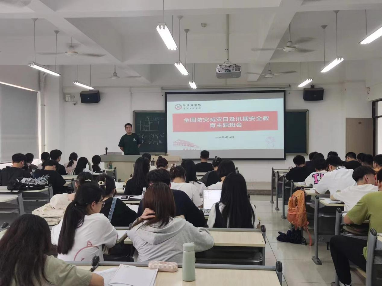我院辅导员以“防范灾害风险,护航高质量发展”为主题,组织开展全国防灾减灾日及汛期安全教育主题班会,帮助学生学习灾害种类和应对措施,帮助学生了解地震、火灾、洪水、台风、暴雨等常见灾害的危害性和应急处理方法,同时介绍一些基本生存救援知识,如如何拨打报警电话、疏散逃生路线、灭火器的正确使用等,增强学生灾害风险防范意识和素养,提高学生防灾避险意识和自救互救能力。