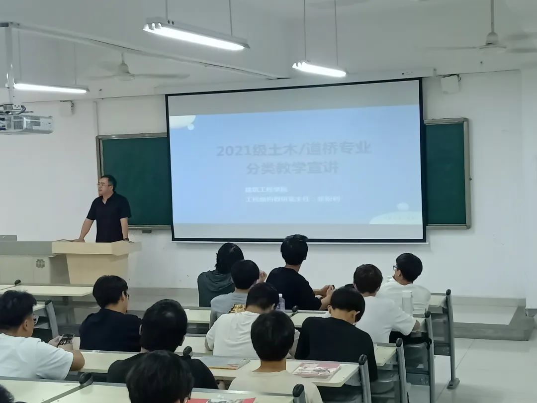 为充分尊重学生的个性化、差异化需求,做好beat365分层分类教学工作,6月14日在亚泽楼104教室面向2021级土木工程专业和道路桥梁与渡河工程专业全体学生开展了分层分类教学宣讲会,宣讲会由工程结构教研室主任张盼利主讲。