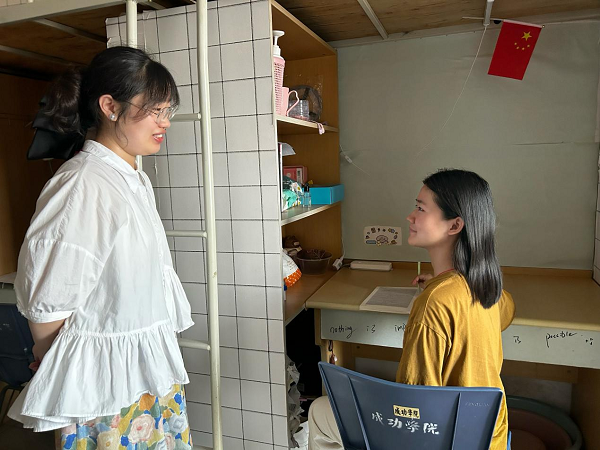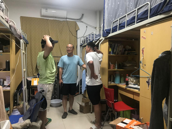 老师们逐一走访了暑期留校学生的宿舍,了解学生目前学习、生活和身心状态,并针对暑期生活及考研安排进行指导,协助解决学生面临的实际困难,疏解学生考研压力。随后,对同学们进行了暑期安全教育。