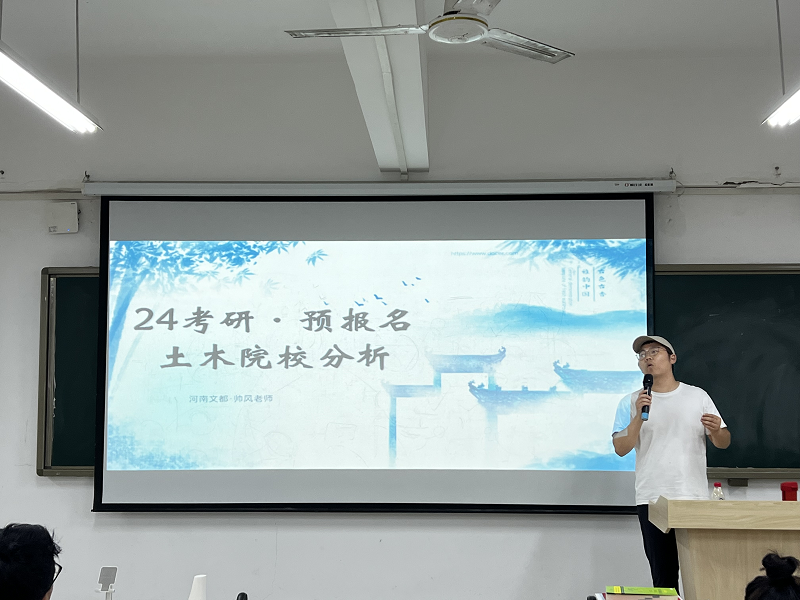 为深入践行“以学生为中心”的教育理念,做好考研指导工作,更好地帮助考研学生明确考研目标院校,9月23日下午特邀河南文都教育资深专业院校分析师高帅风到我院开展2024年考研择校宣讲会。我院全体24届考研学生参加了会议。