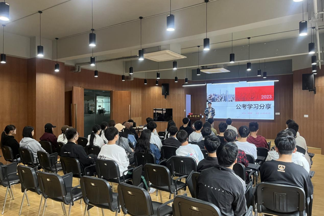 会议伊始,刘思楠老师向大家热烈欢迎了杨丰韶校友的到来,并详细介绍了杨丰韶校友的学习工作经历以及目前所从事的事业和取得的成就。刘思楠老师表示,校友的创业精神和卓越成就是同学们学习的榜样,希望同学们珍惜此次难得的机会,认真听取校友的分享,积极和校友互动。接着,杨丰韶校友以“全力以赴,未来可期”为主题,结合亲身经历分享毕业考公之法,并以自身为例子,向同学们介绍了心态与学习的关系、选择的意义、探索内心的方法、追逐自己热爱的梦想。他深入浅出的演讲赢得了在场同学的阵阵掌声。讲座最后的互动环节中,针对学生们提出的人脉的重要性、大学创业和工作的发展方向、学生个人理想工作倾向三个方面的问题,杨丰韶与在座的学生做出了互动和细致讲解,不但为学生们解除了心中的困惑,而且还鼓励着学弟学妹们勇于追寻和探索,并牢记“勤俭、朴实、自力、更生”的校训精神,为自己争一个平安顺遂、前程似锦的大学生活。