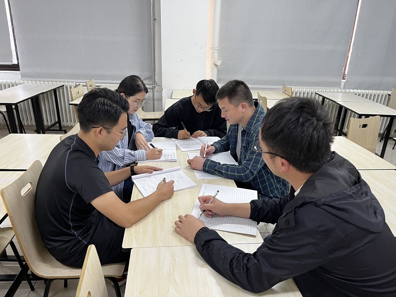 然后,小组成员进行交流讨论,阐述自己在备课过程和课堂教学中的所悟所感及遇到的困难问题,从课堂环节设计、PPT课件制作、板书内容设计等各个方面各抒己见、畅所欲言,并对活动中其他老师的授课亮点和有待优化改进之处进行评说讨论,集思广益、取长补短。讨论结束后,各位新入职教师将小组讨论中公认较好的授课细节和授课方法进行梳理记录,同时对授课过程中大家普遍存在的问题进行总结,分析产生的原因并提出相应的改进措施。