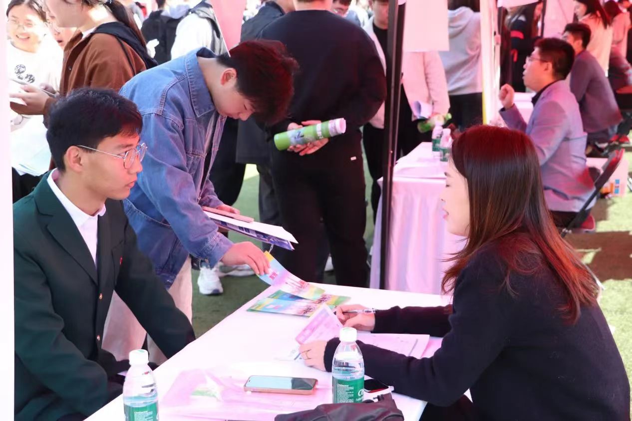 为更好的做好我院2024届毕业生就业工作,促进2024届毕业生实现高质量就业,各毕业班辅导员早早来到会场组织学生入场。今年的毕业生关注自身发展,对于企业发展前景、福利待遇的意识明显增强,招聘会上参会单位积极宣传,会场气氛热烈,同学们纷纷投出自己的简历,招聘代表与毕业生们积极交流。