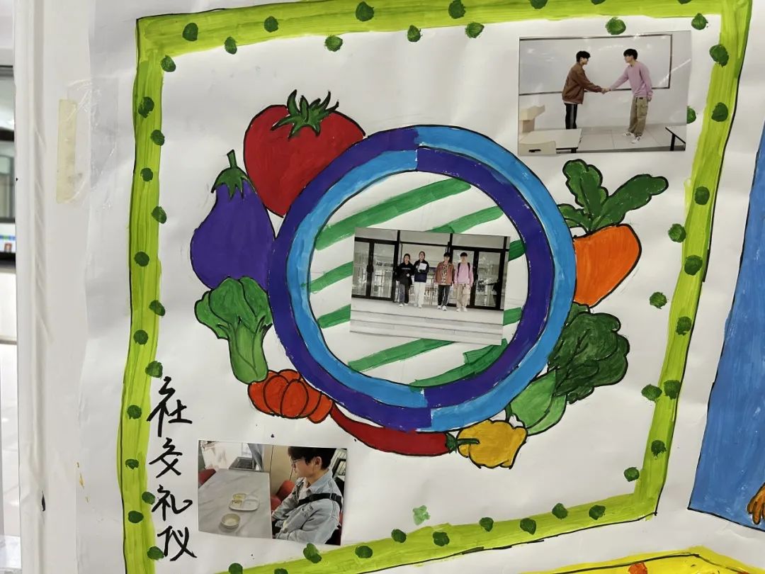 礼仪教育展板展示主要分为五个板块,分别为社交礼仪、文明督导专项行动、文明宿舍、文明课堂与礼仪教育宣讲会等五个部分。