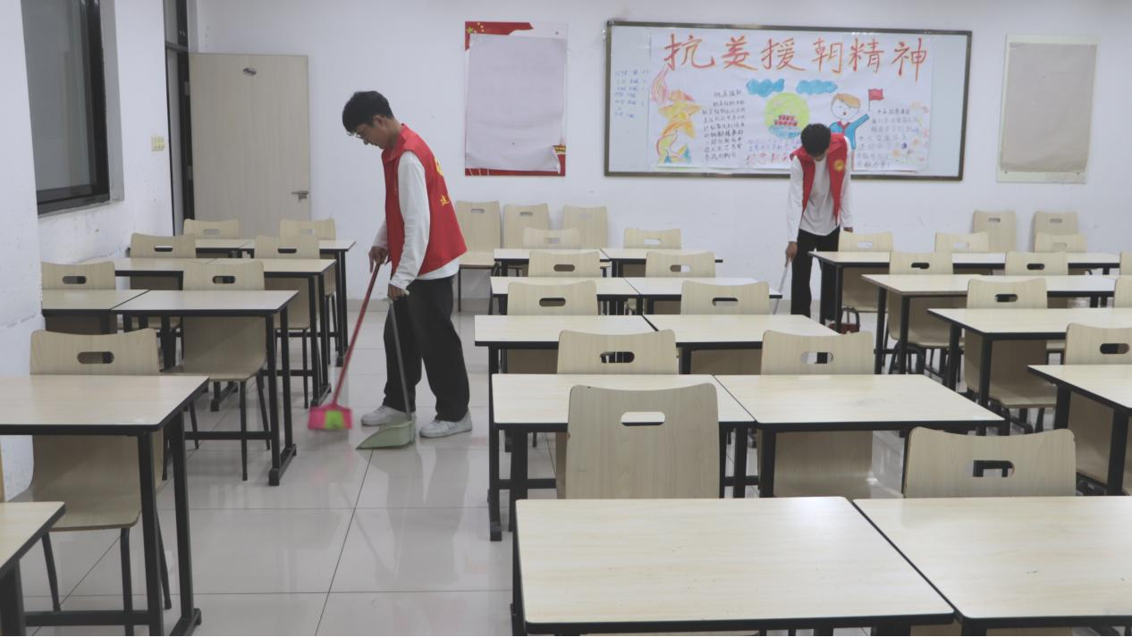 活动高效有序进行,首先将参与活动的学生分为若干小组,每个小组负责一个楼层的打扫工作。其次,负责人针对不同的打扫区域,进行了具体的任务分配。清扫过程中同学们分工合作、密切配合,有条不紊地完成了清理大厅地板、擦拭大厅展品、整理教室桌椅、擦拭玻璃等一系列工作,对教学楼的各个角落进行了彻底的清洁,尽力做到了“不留死角、不留盲区”。