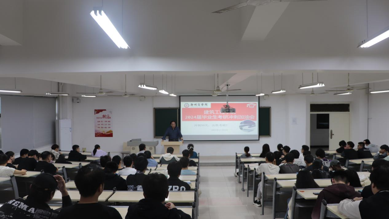 2024届毕业生研究生考试已进入关键冲刺阶段,为鼓励学生坚定信念,坚持努力,争取考研的最后胜利,我院于11月2日下午在亚泽大楼104教室组织开展了2024届毕业生考研冲刺加油会。院长孙利民、副院长张燕燕、考研教研室主任李晓翠、毕业班辅导员老师以及学院200余名考研学生参加了此次会议。会议由李晓翠老师主持。