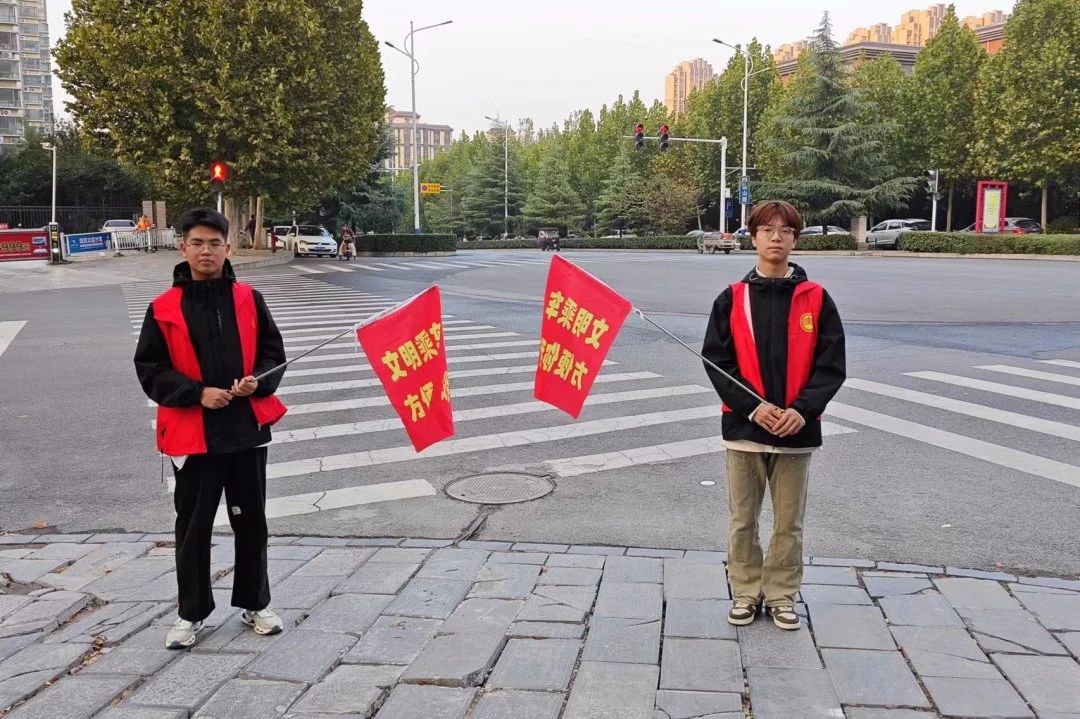 活动中,志愿者们带着扫帚、夹子、垃圾袋等卫生工具对小区进行清洁。志愿者们在清理过程中不忘积极向居民宣传人人参与社区卫生的重要意义,让居民认识到社区的整洁与卫生离不开大家的努力,引导居民更深度的参与社区卫生维护。随后,在文明交通活动中,志愿者穿戴红马甲,手持交通劝导旗,对车辆和行人进行劝导在道路上要彼此文明礼让,尊重他人的交通权益。礼让行人,让别车先行,营造了良好的交通氛围。