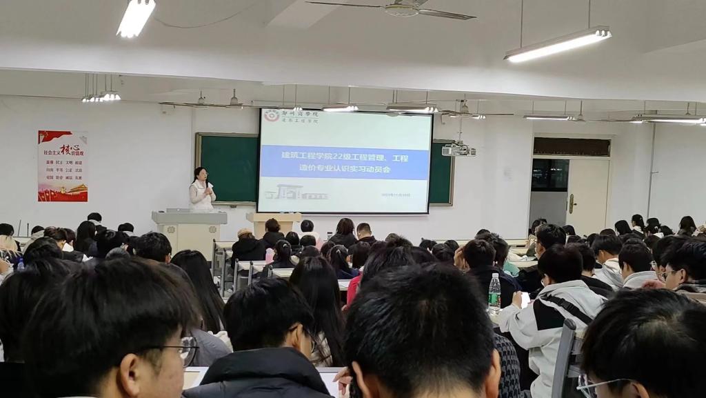 为提升我院学生专业知识素养和综合能力,切实做好实习实训工作,保障顺利开展2022级本科学生的认识实习工作,我院于11月23日下午在YZ104召开了2023-2024学年认识实习工作动员会。此次动员会由王丹、戚宏宇两位老师主讲,全体2022级土木工程、道路桥梁与渡河工程、工程管理和工程造价专业学生和认识实习指导教师参会。