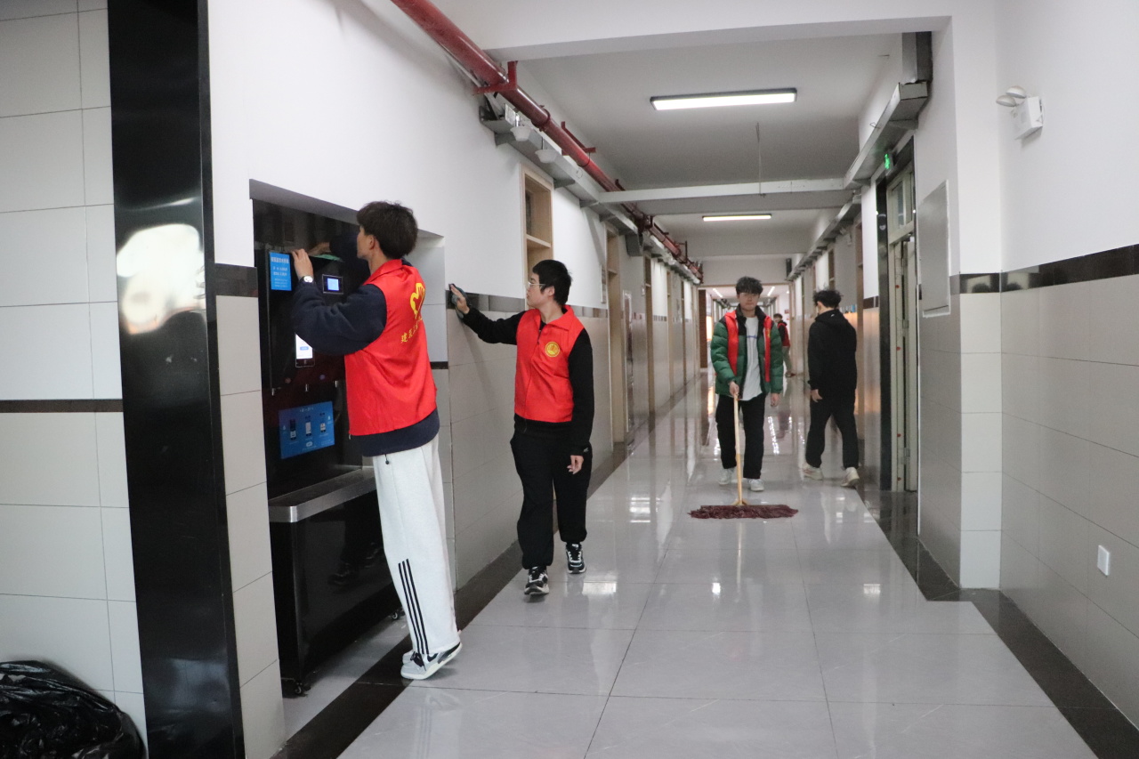 本次活动秉承“大清扫、全覆盖、广参与、常态化”的原则,活动开始前,辅导员老师向志愿者们交代此次活动的具体安排,其中重点交代了自习室和公区的打扫要求。在志愿者的积极配合下有序进行卫生打扫,以无死角、无脏污为准则将宿舍打扫干净,充分展现出不怕脏、不怕累、肯吃苦、爱劳动的精神。