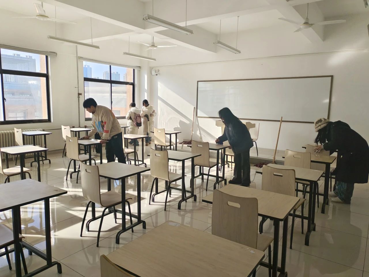 为推动beat365劳动教育工程,提高大学生劳动意识和团队合作能力,让其从实际行动中感受劳动的辛勤和劳动的价值。同时,也为了保持教室的整洁与卫生环境,为考研学子们提供一个良好的考场环境和考试氛围。对此,于2023年12月21日星期四,我院开展了团体劳动活动,对亚泽楼教室进行大清扫并进行考场安排。